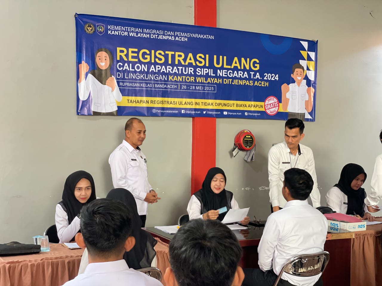 Banda Aceh – Sebanyak 208 Calon Pegawai Negeri Sipil (CPNS) formasi tahun anggaran 2024 di lingkungan Kantor Wilayah Direktorat Jenderal Pemasyarakatan (Kanwil Ditjenpas) Aceh telah menyelesaikan proses registrasi ulang. Kegiatan ini berlangsung selama tiga hari, terhitung sejak 26 s.d 28 Mei 2025, dan dipusatkan di Rumah Penyimpanan Benda Sitaan Negara (Rupbasan) Banda Aceh.