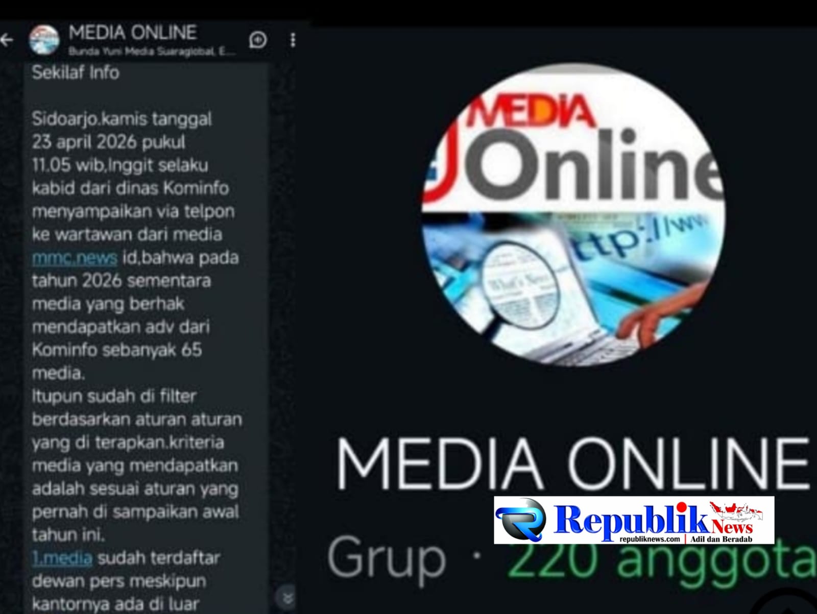 Republiknews.com,Sidoarjo, — Transparasi Advertorial Kominfo Sidoarjo kembali menjadi sorotan publik setelah kebijakan pembatasan hanya 65 media penerima anggaran advertorial (adv) tahun 2026 viral di grup WhatsApp dan media sosial, Kamis (23/4/2026) sekitar pukul 11.05 WIB.