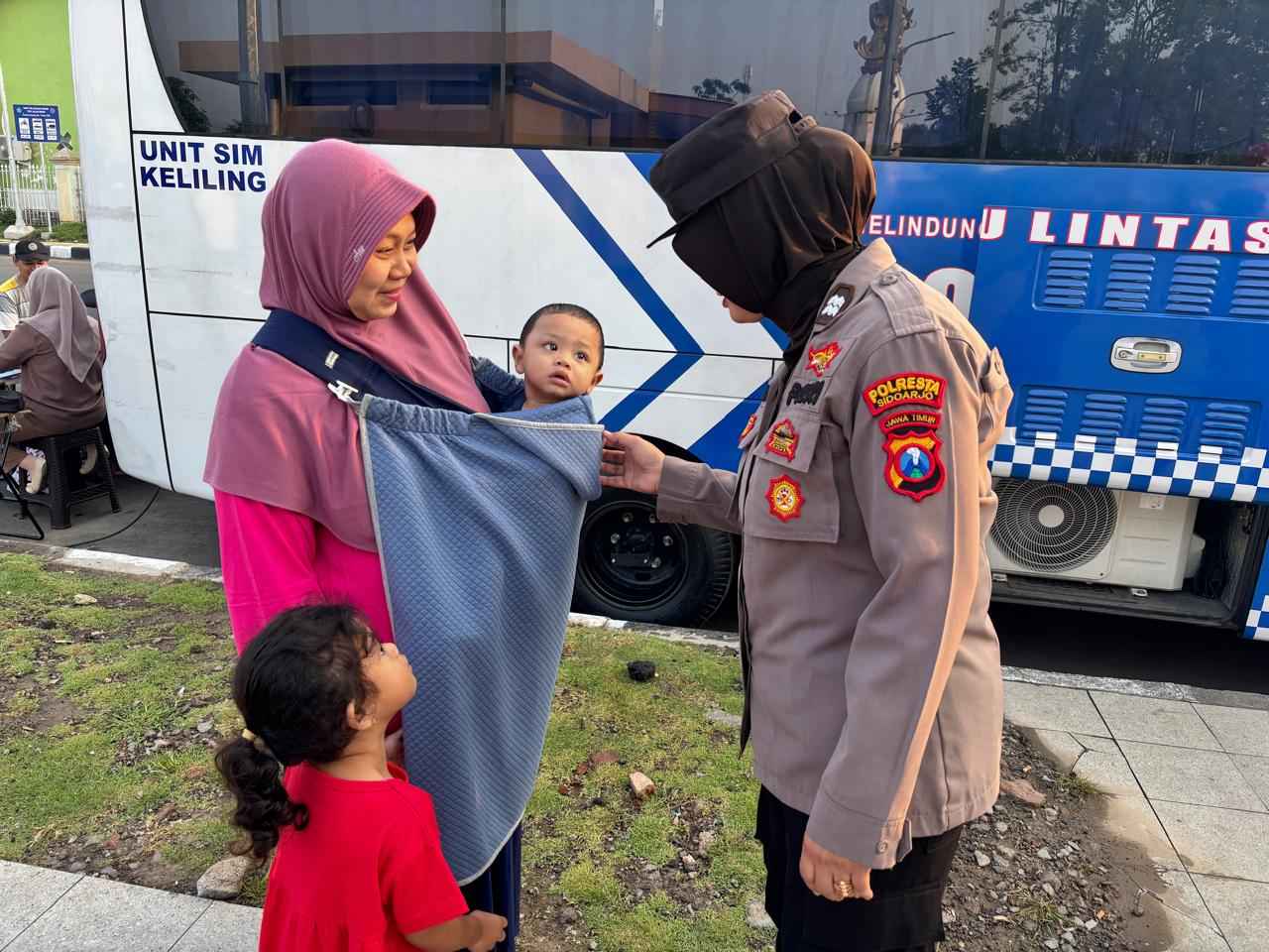 Pada kesempatan ini, Polresta Sidoarjo juga menghadirkan layanan SKCK Keliling Online dan SIM Keliling.