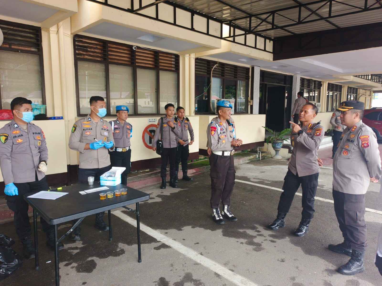 “Jadi pemeriksaan tersebut melibatkan pemeriksaan kelengkapan administrasi anggota, serta kelengkapan fisik seperti pakaian dinas, atribut, dan sikap tampang dan Tes urine”,ujar Kapolresta