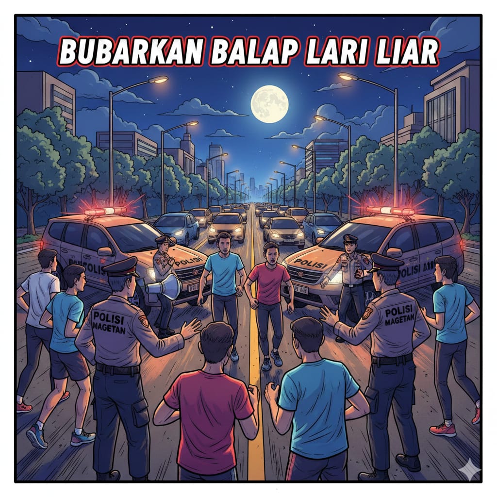Magetan – Aksi balap orang yang viral di media sosial dan terjadi di Jalan Raya protokol Maospati–Magetan, tepatnya di Desa Sugihwaras, Kecamatan Maospati, pada Sabtu malam (21/2/2026), mendapat respons cepat dari jajaran Polres Magetan melalui Polsek Maospati.