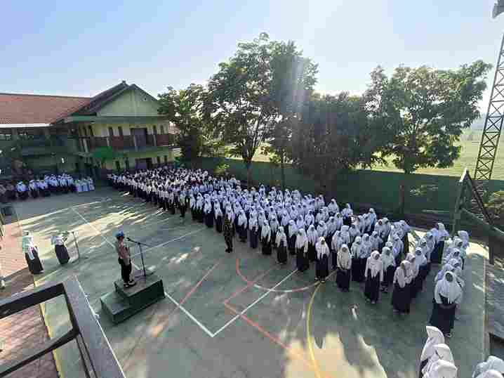 Bhabinkamtibmas Rejeni Aiptu Adin bersama Babinsa Rejeni Serma Wahabin berdiri di depan siswa-siswi SMPI Krembung, dengan menyampaikan sejumlah himbauan kamtibmas. Terutama berkaitan dengan bahaya kenakalan remaja.