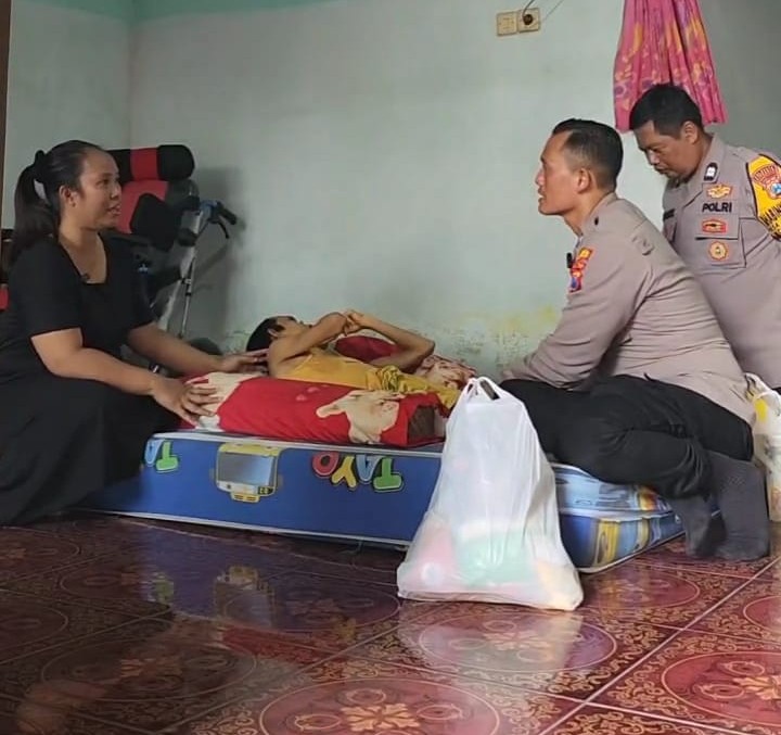 Sidoarjo, Republiknews.com -Bhabinkamtibmas Kebaron, Tulangan, Sidoarjo Aipda Lucky Ardian, Sabtu (8/2/2025), membesuk Evan Syahputra, 17 tahun, yang terbaring sakit karena polio sejak kecil.