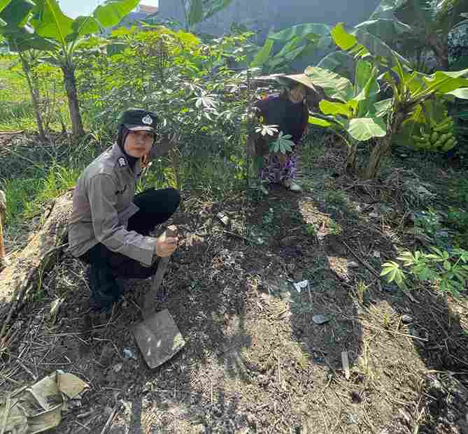 Sidoarjo – Bhabinkamtibmas Polsek Sedati menunjukkan komitmen nyata dalam mendukung program astacita ketahanan pangan dengan menggalang kolaborasi bersama warga membangun budidaya singkong skala rumah tangga.