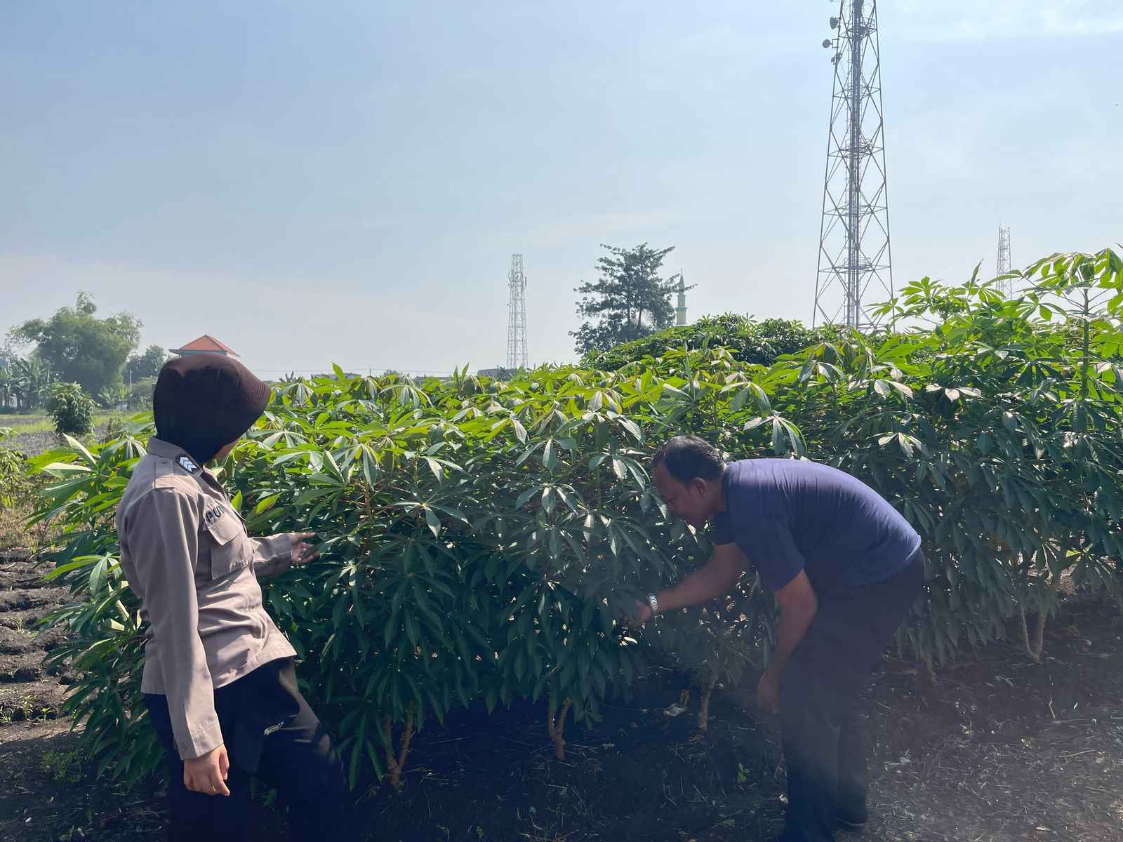 Brigadir Dwi Retno Putri melaksanakan kegiatan pengecekan langsung ke kebun singkong milik warga di Desa Pulungan Kecamatan Sedati Kabupaten Sidoarjo.