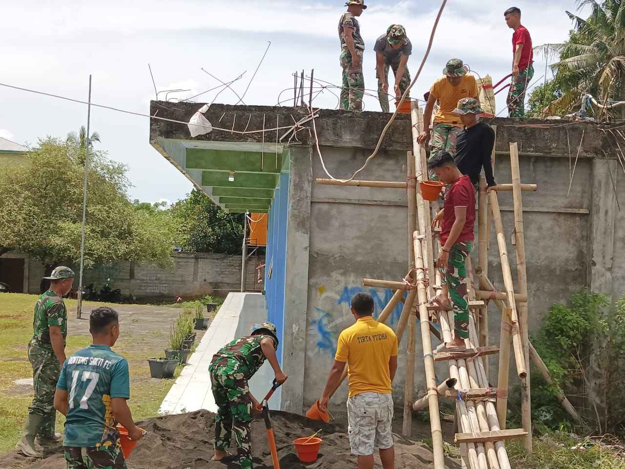 Kali ini Satgas TMMD Kodim 1310/Kodim Bitung, mengkebut rehabilitasi Pesantren Hidayatullah dengan mengerahkan 13 personil Satgas TMMD dari unsur TNI dan Polri di bantu warga sekitar, mengingat bulan suci Ramadhan semakin dekat.
