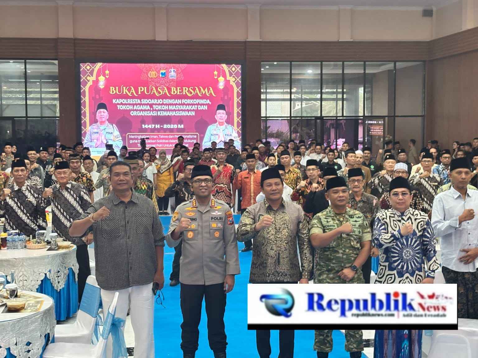 Republiknews.com,Sidoarjo – Suasana kebersamaan dan keharmonisan tampak kental dalam kegiatan buka puasa bersama yang digelar bersama jajaran Forkopimda dan tokoh masyarakat di Gedung Serbaguna Polresta Sidoarjo, Kamis (5/3/2026).