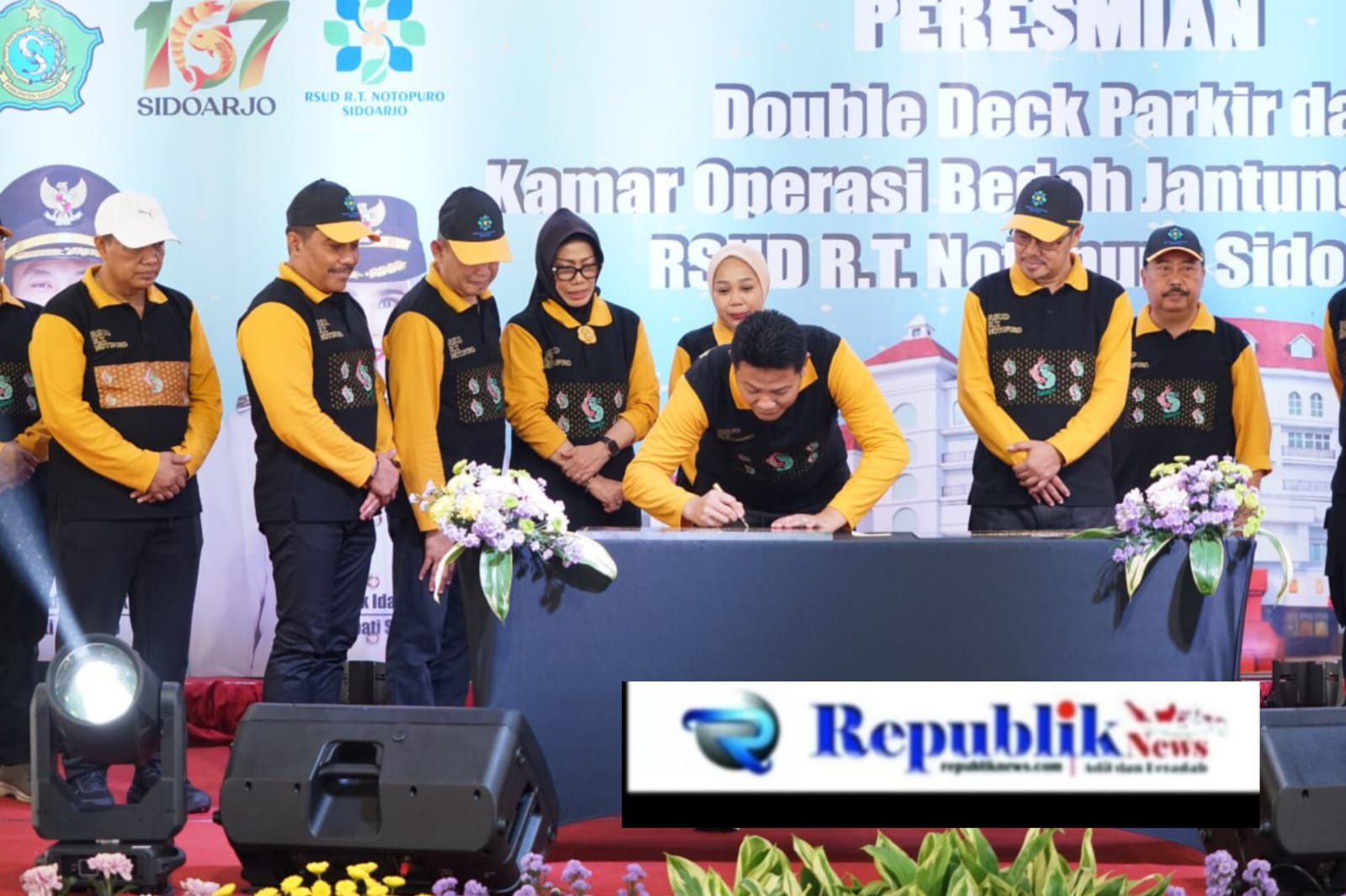 Republiknews.com,Sidoarjo – Pemerintah Kabupaten Sidoarjo terus menunjukkan komitmennya dalam meningkatkan kualitas pelayanan kesehatan bagi masyarakat. Bupati Sidoarjo Subandi meresmikan fasilitas double deck area parkir serta kamar operasi bedah jantung terbuka di RSUD R.T. Notopuro, Jumat (13/2/2026).