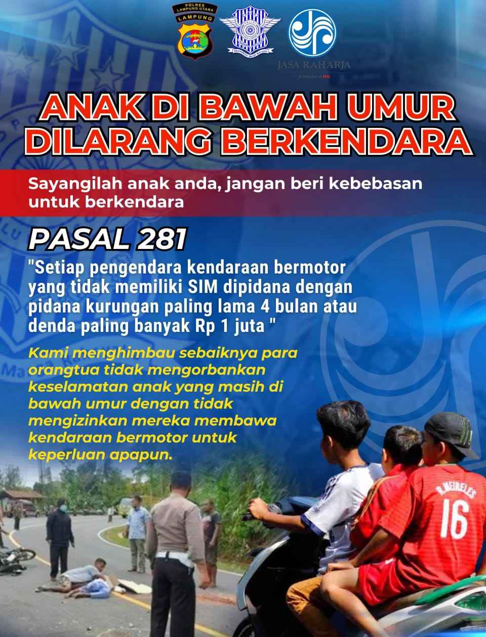 Kapolres Lampung Utara AKBP Teddy Rachesna, S.H., S.I.K., M.Si. mengatakan, guna meminimalisir kecelakan terhadap pelajar (anak dibawah umur) jajaran kita telah memberikan himbauan melalui media sosial dan pemasangan spanduk selain itu, kita juga telah melakukan sosialisasi tertib berlalulintas ke sekolah-sekolah.