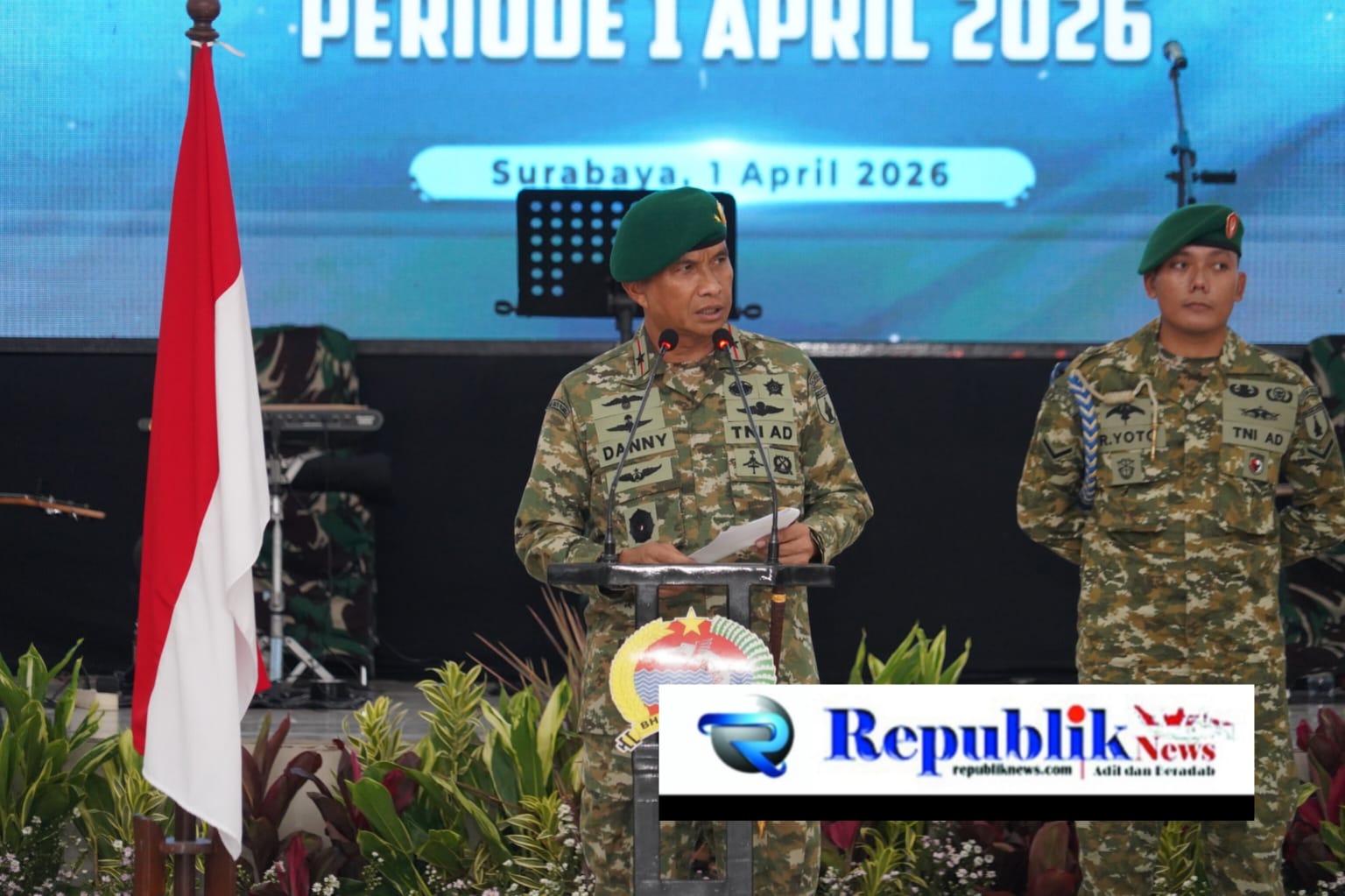 Republiknews.com,SURABAYA – Komandan Korem (Danrem) 084/Bhaskara Jaya, Brigjen TNI Danny Alkadrie, memimpin upacara pelantikan kenaikan pangkat Bintara dan Tamtama periode 1 April 2026 yang dirangkaikan dengan acara halal bihalal Hari Raya Idul Fitri 1447 H. Kegiatan berlangsung di Aula Makorem, Jalan Ahmad Yani No. 1 Siwalankerto, Kecamatan Wonocolo pada Rabu (1/4/2026).