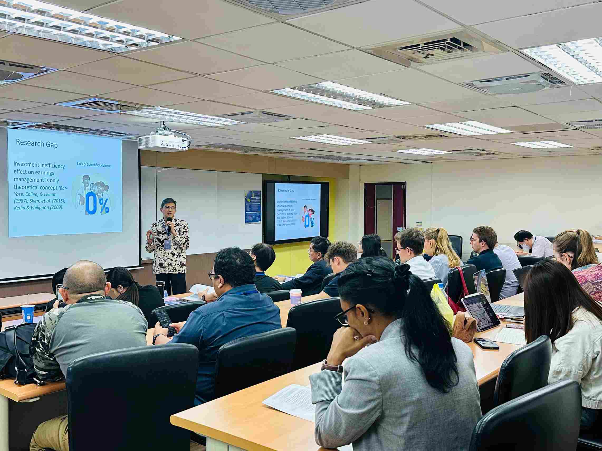 Tainan, 5 nov 2025,Taiwan Dalam ajang bergengsi The 21st International Conference on Knowledge-Based Economy and Global Management yang diselenggarakan di Southern Taiwan University of Science and Technology (STUST) pada 4–5 November 2025, Dr. Elvis Ronald Sumanti, MFM, Dekan Fakultas Ekonomi dan Bisnis Universitas Klabat, sukses memukau para peserta dan panel akademisi internasional melalui paparannya berjudul “The Causal Effect of Earnings Management and Investment Inefficiency.”