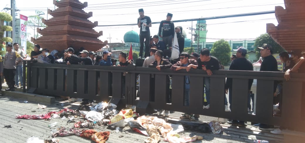 Dalam aksinya, massa AMI menimbun halaman gedung dewan dengan tumpukan sampah, sebagai simbol buruknya kinerja wakil rakyat dalam menyikapi persoalan hukum yang timpang.