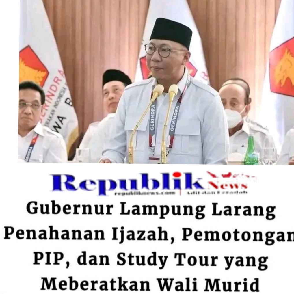Lampung- Republiknews.com, Gubernur Lampung, Rahmat Mirzani Djausal, mengeluarkan instruksi tegas terkait tiga permasalahan utama dalam dunia pendidikan yakni larangan menahan ijazah, pembatasan study tour yang memberatkan siswa, dan penyaluran dana Program Indonesia Pintar (PIP) tanpa potongan.