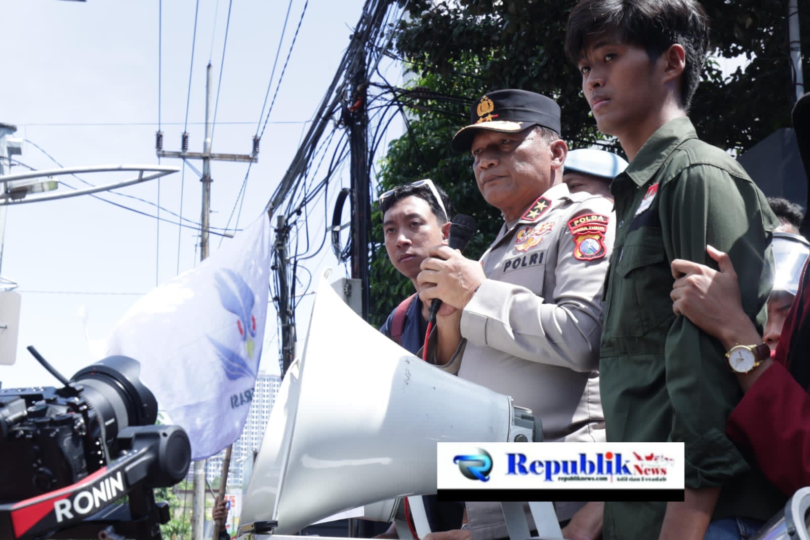 Republiknews.com,SURABAYA – Kapolda Jawa Timur Irjen Pol Drs. Nanang Avianto, M.Si., turun langsung menemui massa aksi yang tergabung dalam Badan Eksekutif Mahasiswa (BEM) Nusantara Jawa Timur, saat menggelar unjuk rasa di depan Mapolda Jatim, Sabtu (30/8/2025).