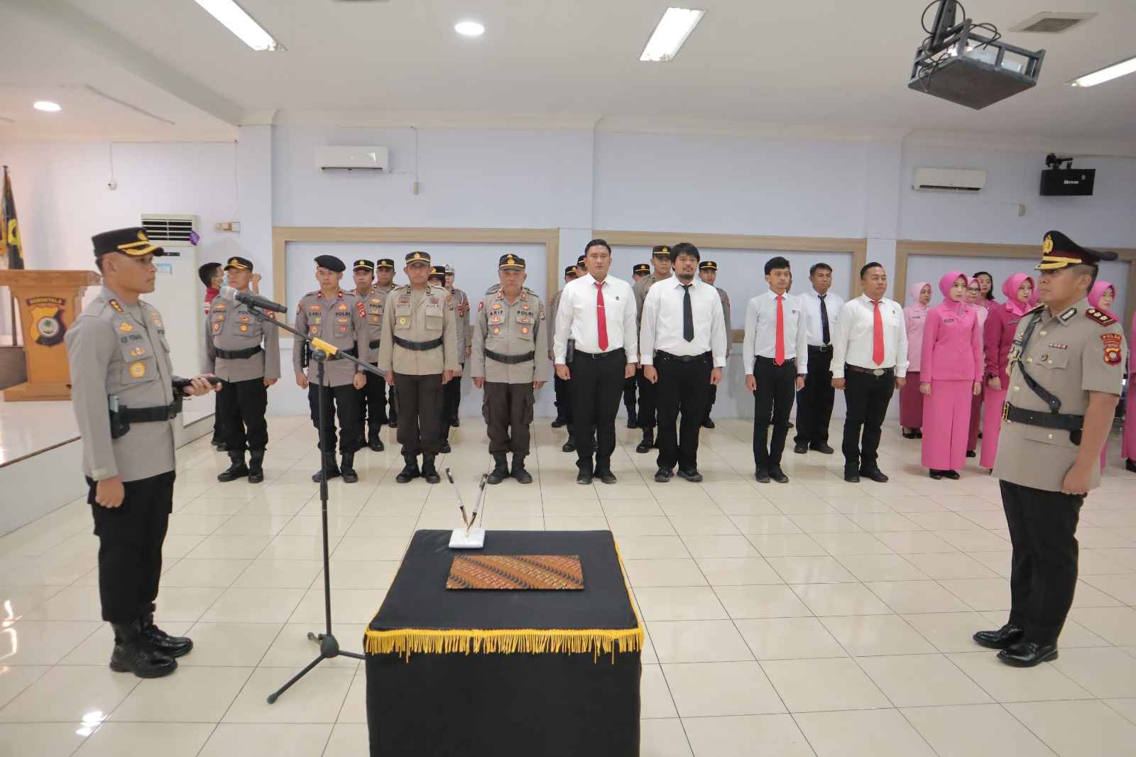 Hari ini ,Kamis (10/4) pukul 08.00 Wita di Aula Sanika Satyawada ,Kapolresta Gorontalo Kota Kombespol Dr.Ade Permana,S.I.K.,MH memimpin Upacara Pelantikan Wakapolresta yang dijabat oleh AKBP Andik Gunawan,S.I.K,dimana sebelumnya menjabat sebagai Kapolres Gorontalo Utara .