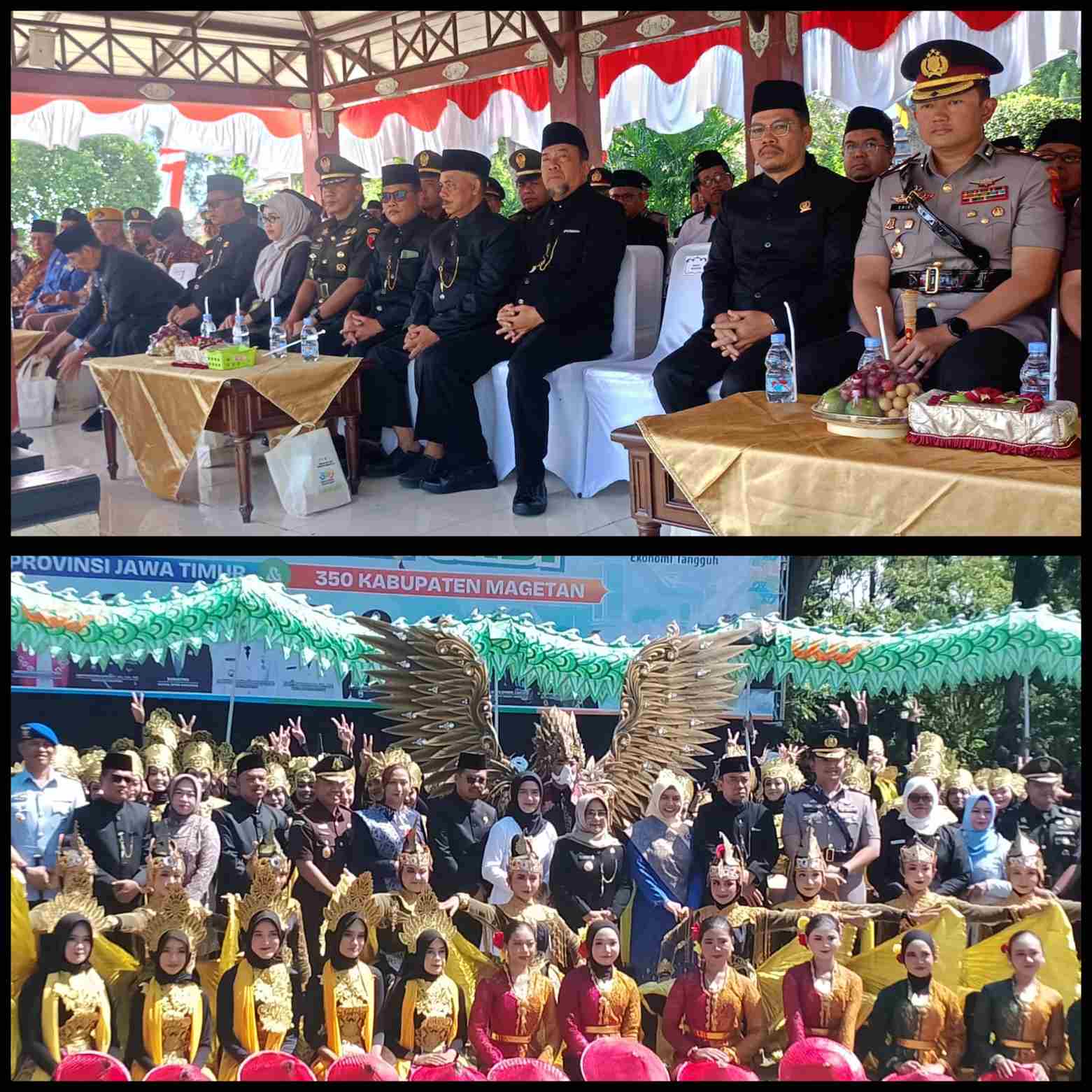 Magetan, Pemerintah Kabupaten Magetan Gelar Upacara dalam rangka peringatan Hari Jadi Kabupaten Magetan ke 350, sekaligus Hari Jadi Provinsi Jawa Timur ke 80, Minggu (12/10/2025) bertempat di Alun-alun Magetan.