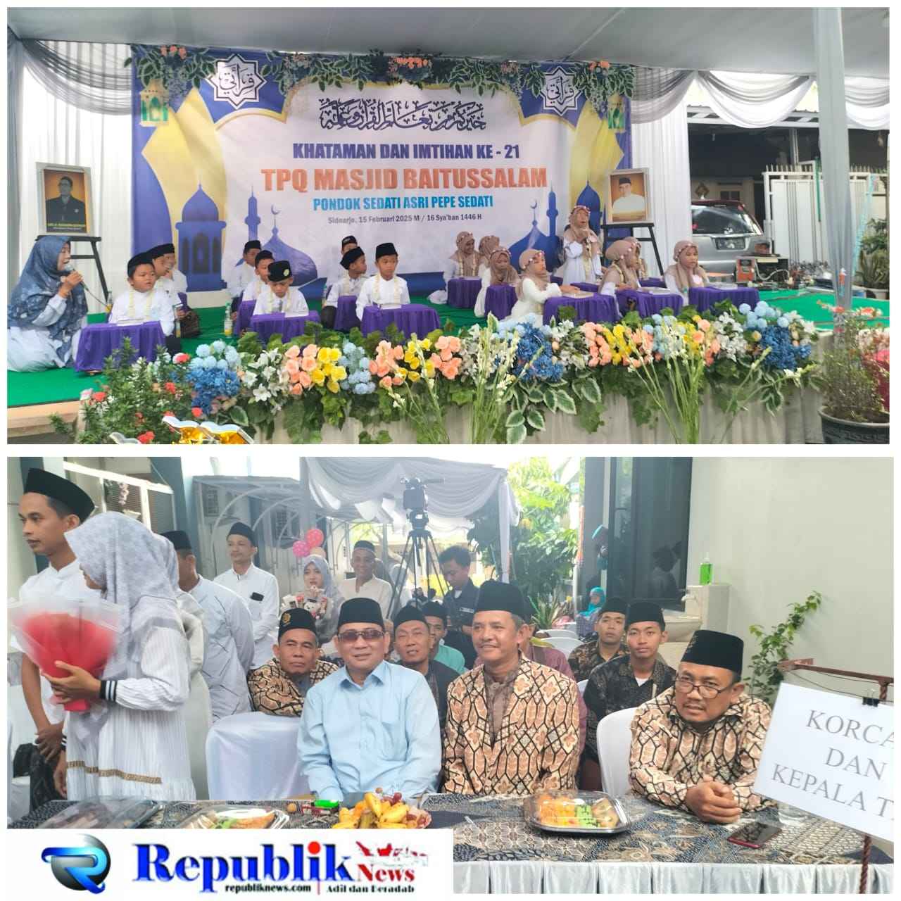 Republiknews.com,Sidoarjo – Bertempat di pelataran Masjid Baitussalam,Sebanyak 18 siswa siswi tampil dalam kegiatan khotmil Qur’an tersebut .