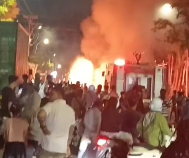 BBM yang meluber ke jalan raya membuat si jago merah menggila, selang beberapa saat pihak Damkar kota Bitung, melakukan pemadaman .
