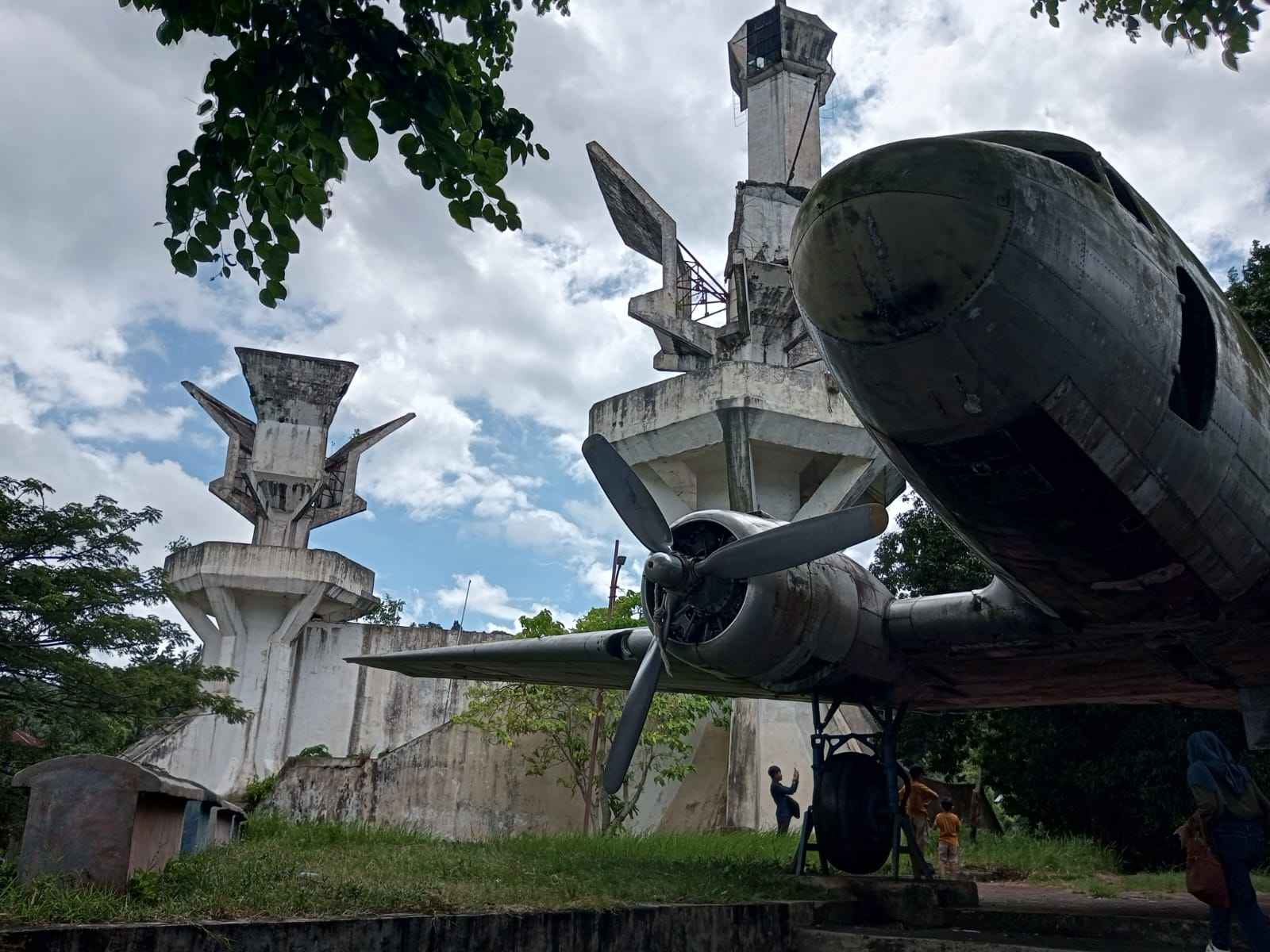 ‎Nampak juga Pesawat terbang tua yang di jadikan bukti sejarah, juga terlihat kotor dan penuh coretan dari oknum yang tidak bertanggung jawab, serta sampah yang berserakan didalam kabin, Pesawat perang  yang sengaja dibuat untuk melengkapi monumen Trikora terlihat mulai keropos bagian bawahnya.