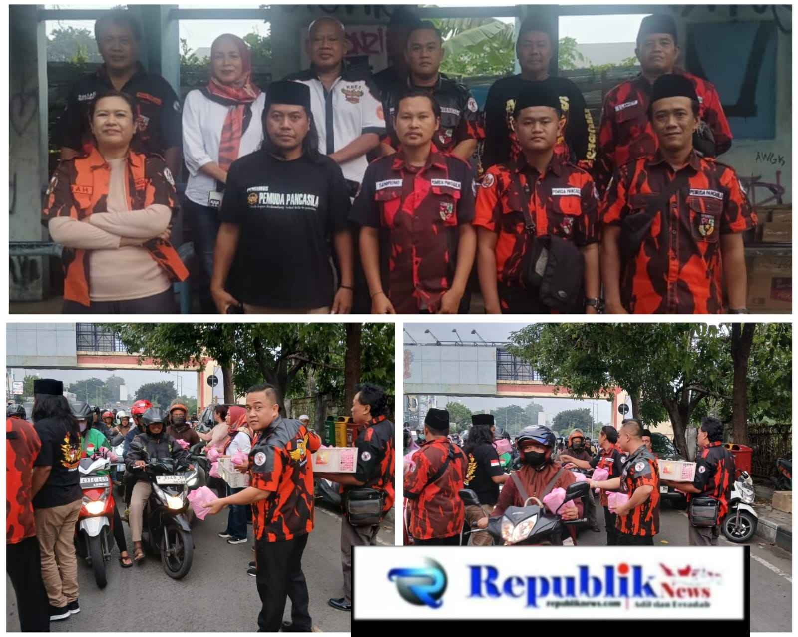 Puluhan anggota Pemuda Pancasila terlihat turun langsung ke jalan untuk membagikan paket takjil kepada pengendara sepeda motor maupun mobil yang melintas menjelang waktu berbuka puasa. Kegiatan ini mendapat sambutan hangat dari masyarakat yang melintas di lokasi.