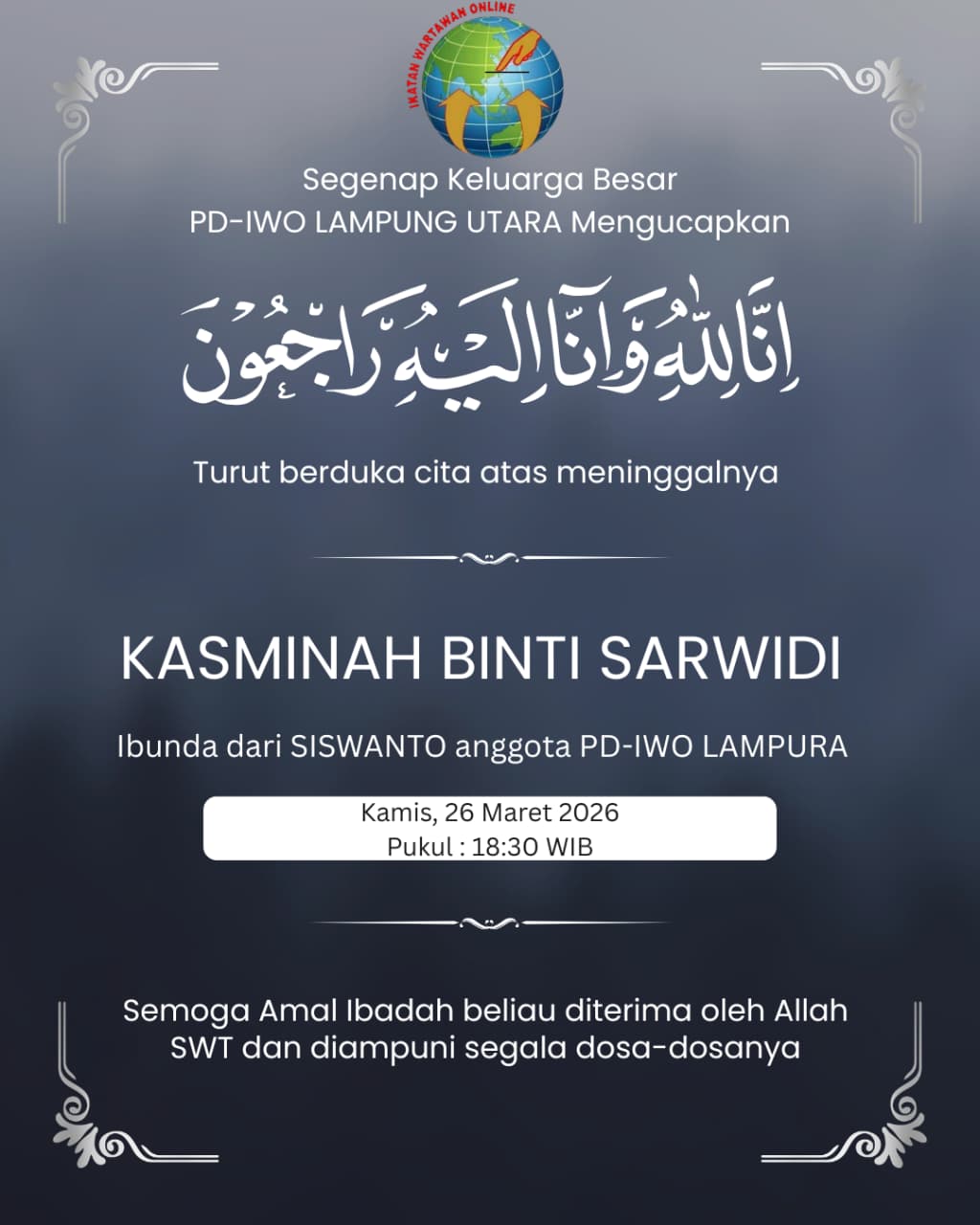 PD-IWO Lampung Utara Turut Berduka Cita Atas Wafatnya Kasminah Binti Sarwidi Ibunda Siswanto Arifin (Anggota IWO Lampura)
