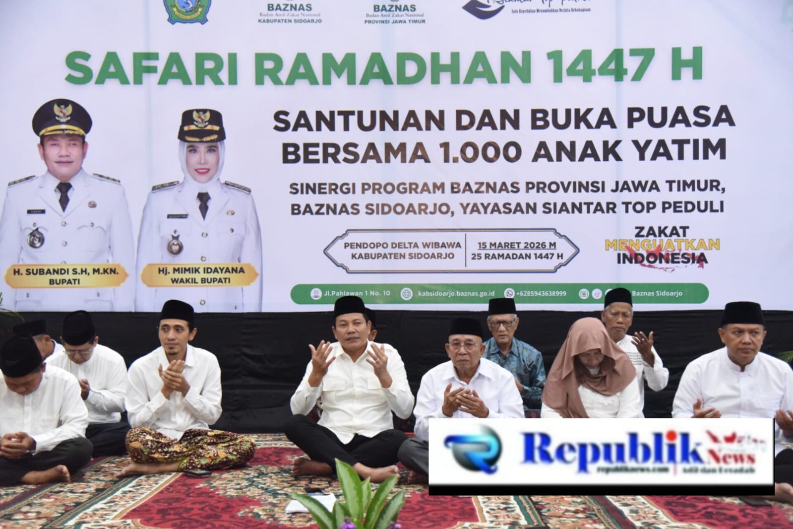 Republiknews.com, Sidoarjo – Pemerintah Kabupaten Sidoarjo bersama Baznas Sidoarjo, Baznas Jawa Timur, dan Yayasan Siantar Top Peduli menggelar kegiatan santunan kepada seribu anak yatim dalam rangka Safari Ramadan 1447 Hijriah.
