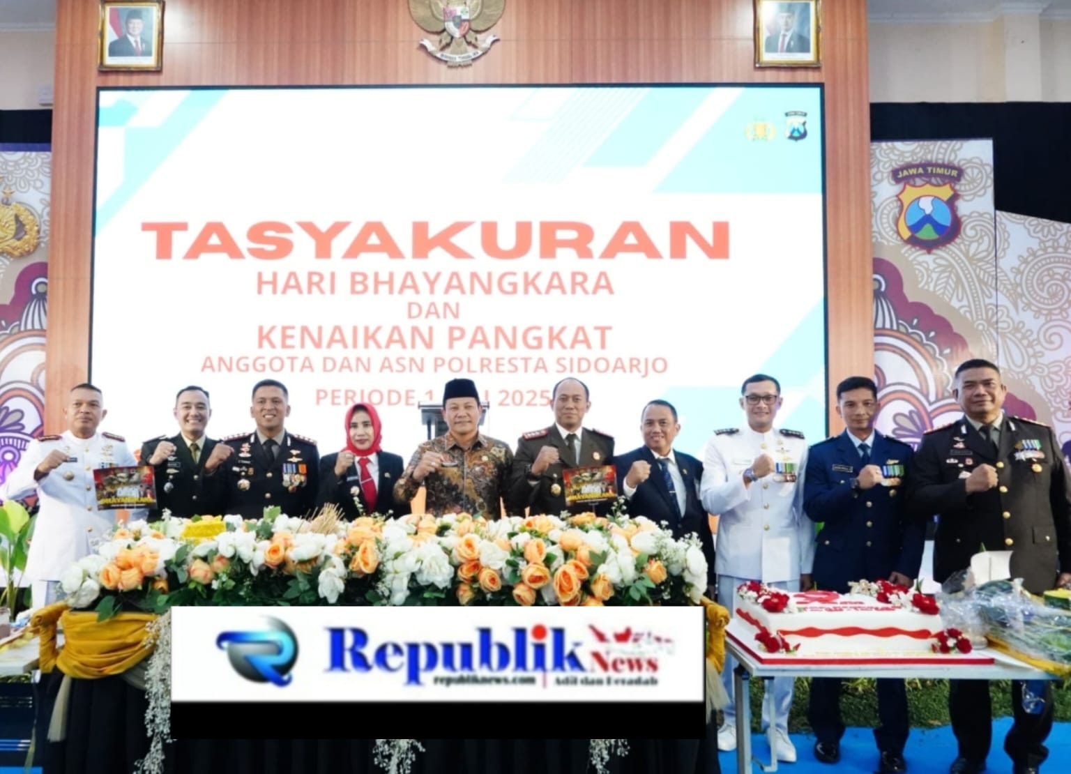 Republiknews.com, Sidoarjo – Dengan mengusung tema “Polri Untuk Masyarakat”, jajaran Kepolisian Polresta Sidoarjo menggelar upacara peringatan Hari Bhayangkara ke-79 dengan khidmat di Lapangan Mako Polresta Sidoarjo, Selasa (1/7/2025).