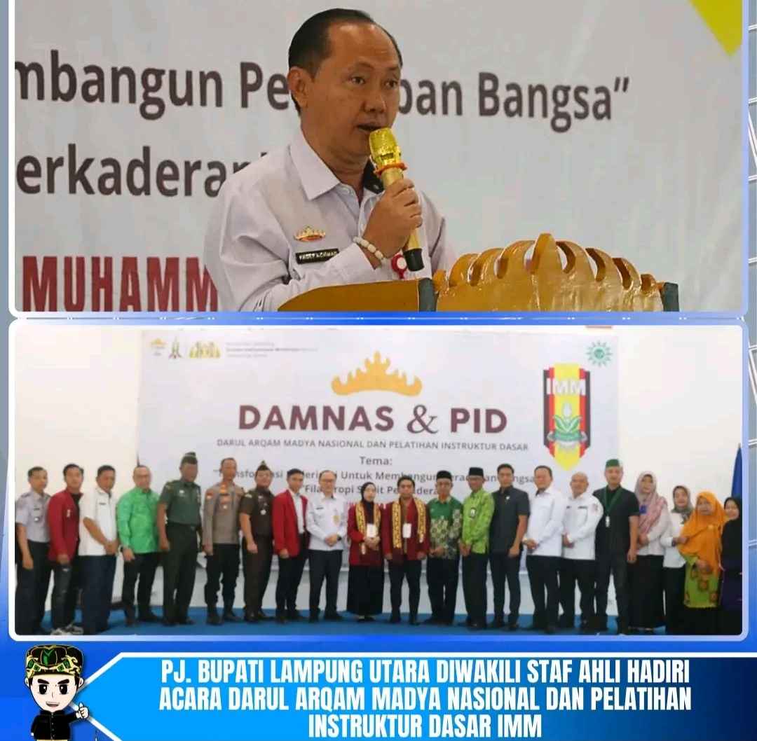 Lampura, Republiknews.com – Penjabat (Pj.) Bupati Lampung Utara, Drs. H. Aswarodi, M.Si., diwakili oleh Staf Ahli Bupati Bidang Ekonomi dan Keuangan, Fadly Achmad, S. Sos., MM, menghadiri Acara Darul Arqam Madya Nasional dan Pelatihan Instruktur Dasar yang diselenggarakan oleh Pimpinan Cabang Ikatan Mahasiswa Muhammadiyah (IMM) Lampung Utara di Universitas Muhammadiyah Kotabumi.