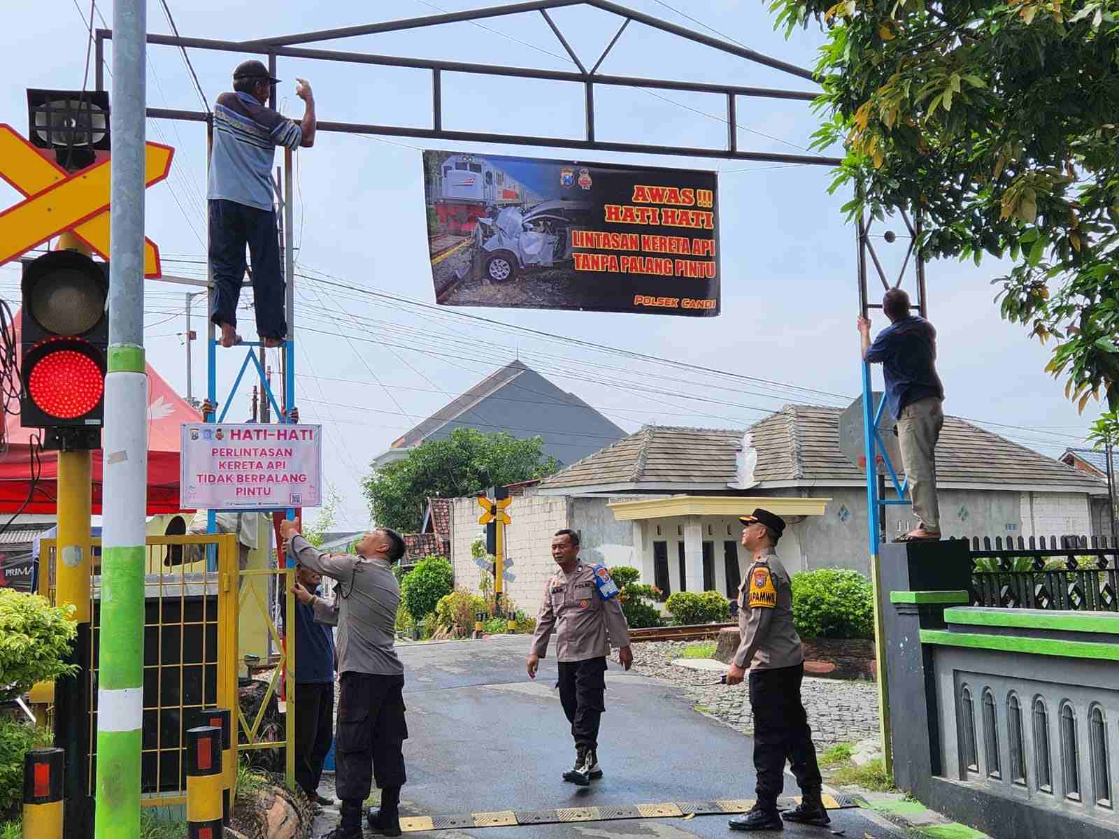 Seperti dilakukan Kapolsek Candi Polresta Sidoarjo Kompol Eka Anggriana bersama anggotanya turun langsung memasang himbauan tersebut pada Kamis (27/3/2025). Antara lain, di pintu perlintasan Kereta Api tanpa palang Desa Gelam, Desa Tenggulunan dan Desa Sumokali.