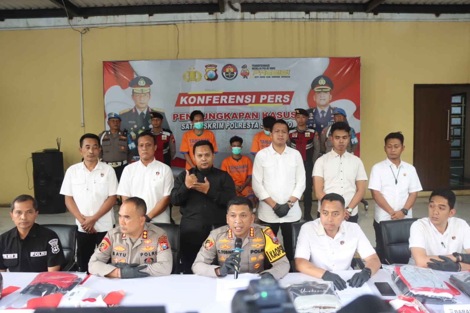 “Setelah 2×24 jam dari kejadian, tim gabungan dari Polrestabes Surabaya dan Polresta Sidoarjo berhasil mengamankan empat pelaku. Antara lain, D.I. asal Situbondo sebagai joki, M.I. asal Kenjeran Surabaya sebagai eksekutor, dua orang lagi A.G. dan M.F. sebagai penadah barang milik korban,” kata Kapolresta Sidoarjo Kombes. Pol. Christian Tobing, Rabu (14/5/2025).