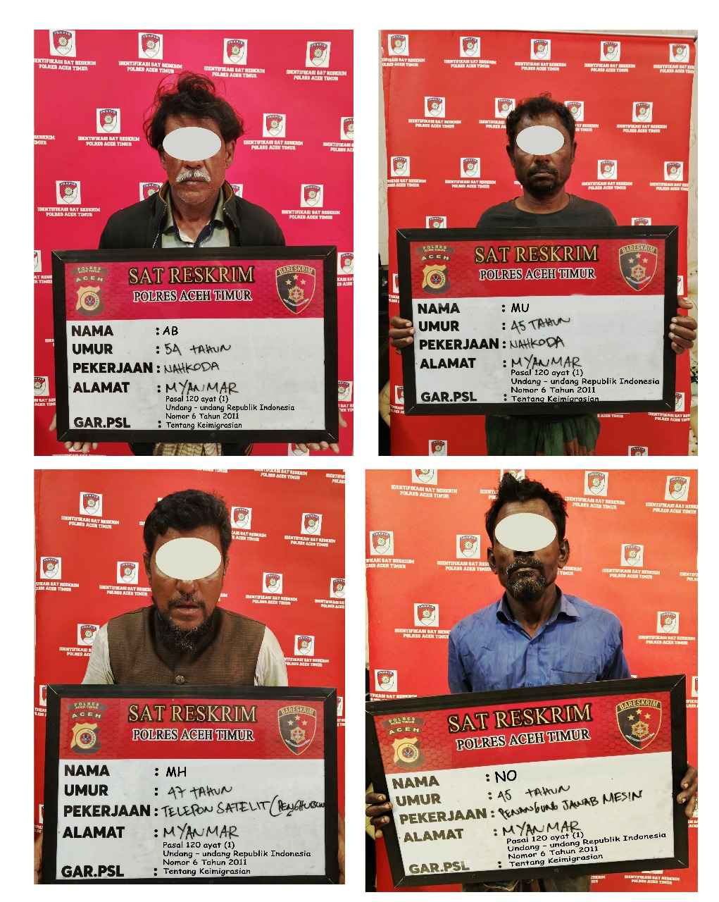 Kapolres Aceh Timur AKBP Nova Suryandaru, S.I.K. melalui Kasatreskrim Iptu Adi Wahyu Nurhidayat, S.TrK.,S.I.K. menyebutkan keempat WNA tersebut merupakan warga Myanmar diantaranya; AB (51), MU (48), MH (46) dan NO (45).