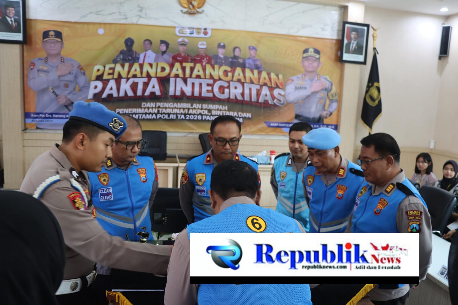 Republiknews.com,PASURUAN – Polres Pasuruan menegaskan komitmennya dalam mewujudkan proses penerimaan anggota Polri Tahun Anggaran 2026 yang bersih, transparan, akuntabel, dan humanis melalui pelaksanaan pakta integritas.