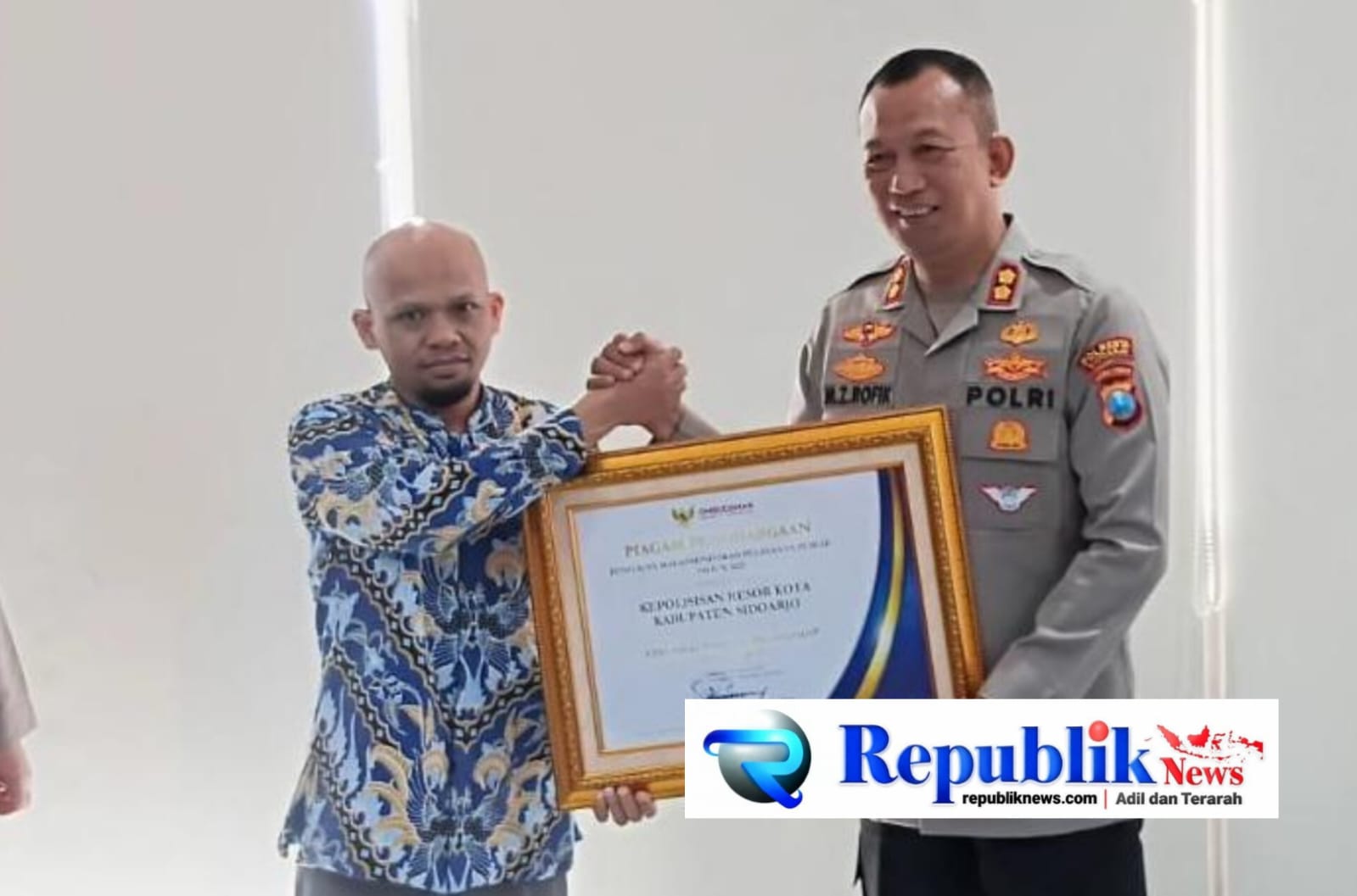 Republiknews.com,SIDOARJO – Polresta Sidoarjo Polda Jatim kembali menorehkan prestasi membanggakan di bidang pelayanan publik.