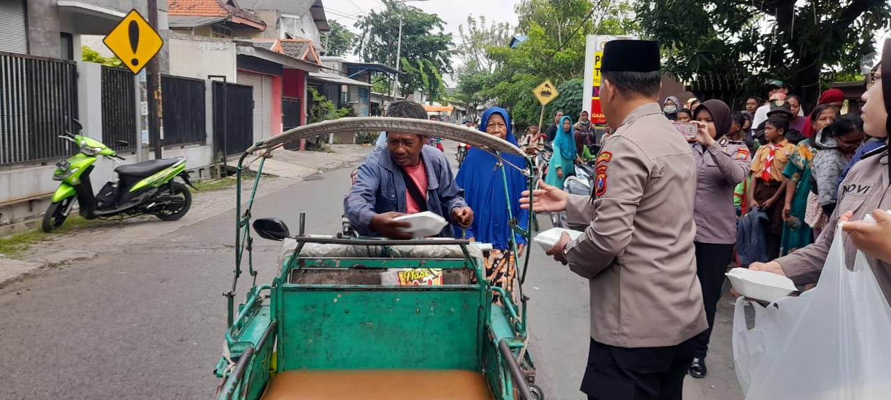 Turut membagikan nasi Jumat Berkah kepada masyarakat Kapolsek Taman Kompol Rochsulullah dan Wakapolsek Taman Kompol Samat. Ia menyampaikan kegiatan Jumat Berkah merupakan upaya yang dilakukan untuk membangun jiwa sosial kepada anggota.