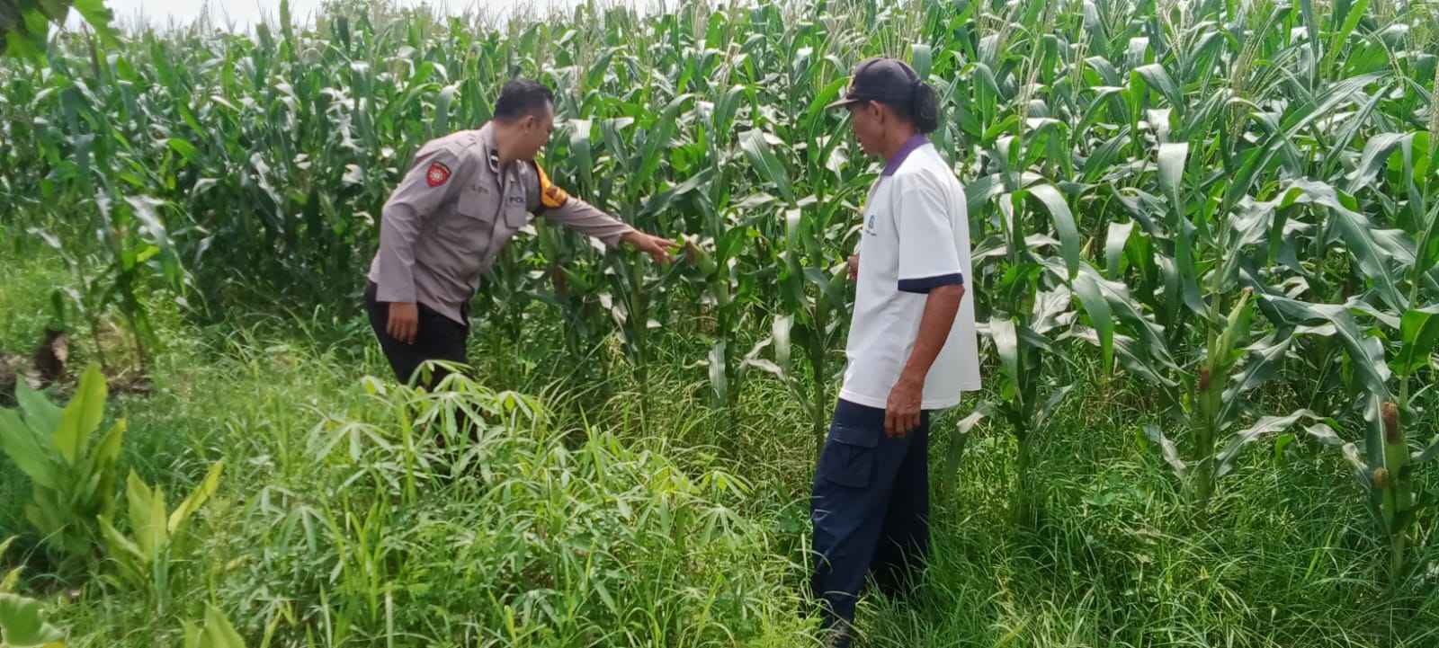 Sidoarjo -Sebagai bentuk nyata dukungan terhadap program ketahanan pangan nasional, Bhabinkamtibmas Polsek Tarik melaksanakan kegiatan sambang dan monitoring ke lahan perkebunan jagung milik warga yang berada di Desa Singogalih, Kecamatan Tarik, Kabupaten Sidoarjo, pada hari Rabu, 25 Juni 2025.