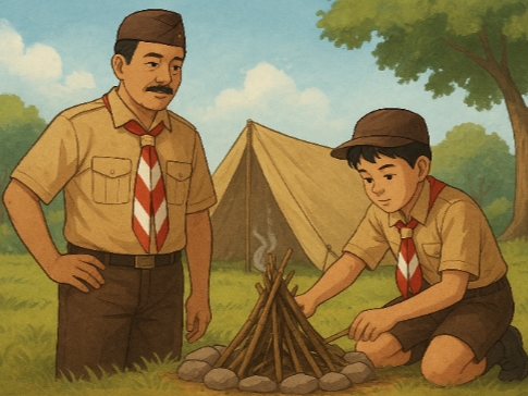 Dan di balik setiap regu yang tertib, di balik setiap tali temali yang rapi, ada guru pembimbing yang diam-diam menukar waktu istirahatnya untuk memastikan anak-anaknya belajar dengan benar.