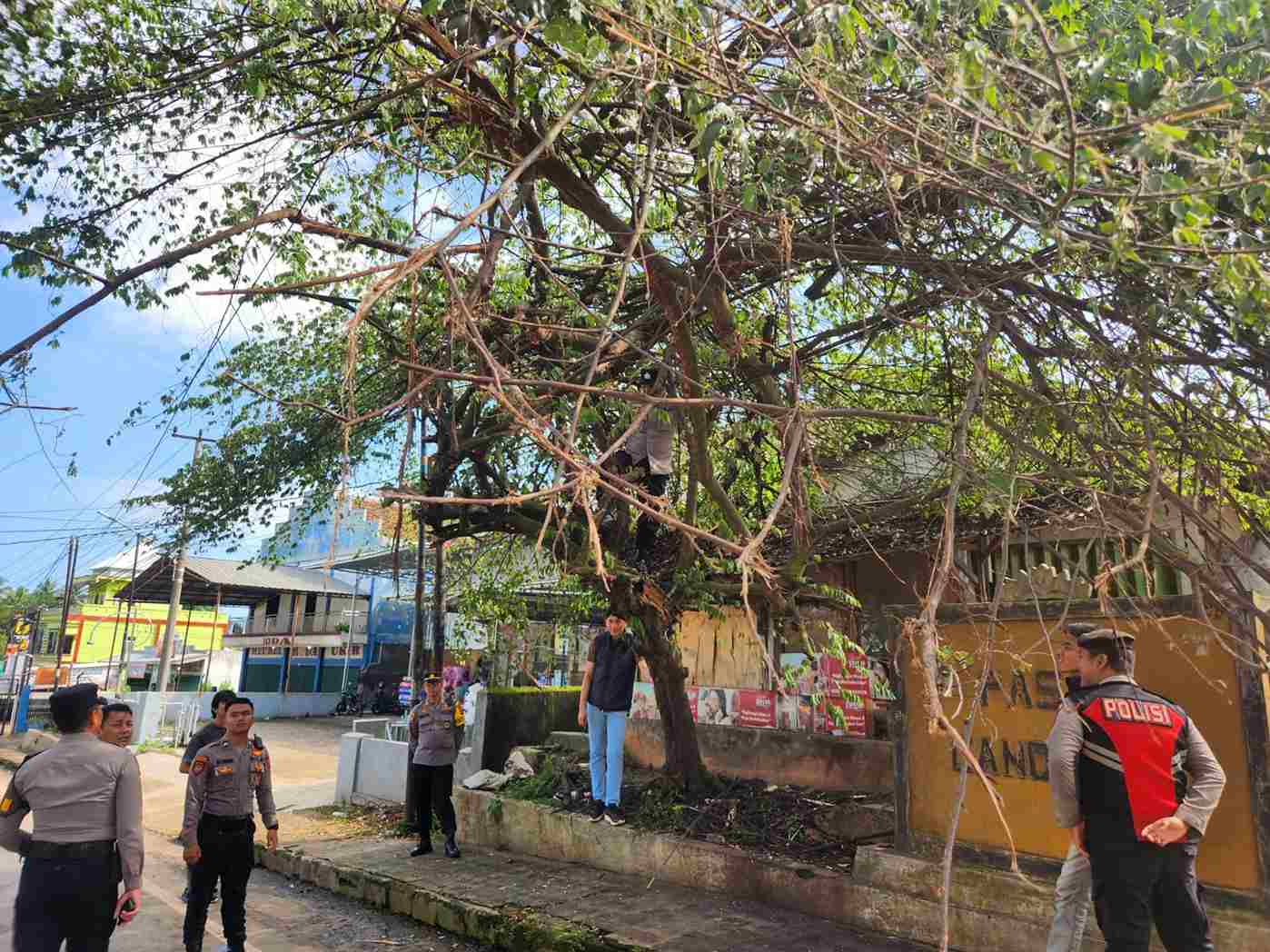 Respon Laporan 110, Polres Lampung Utara Gerak Cepat Tangani Pohon Rawan Tumbang di Depan Pasar Candimas