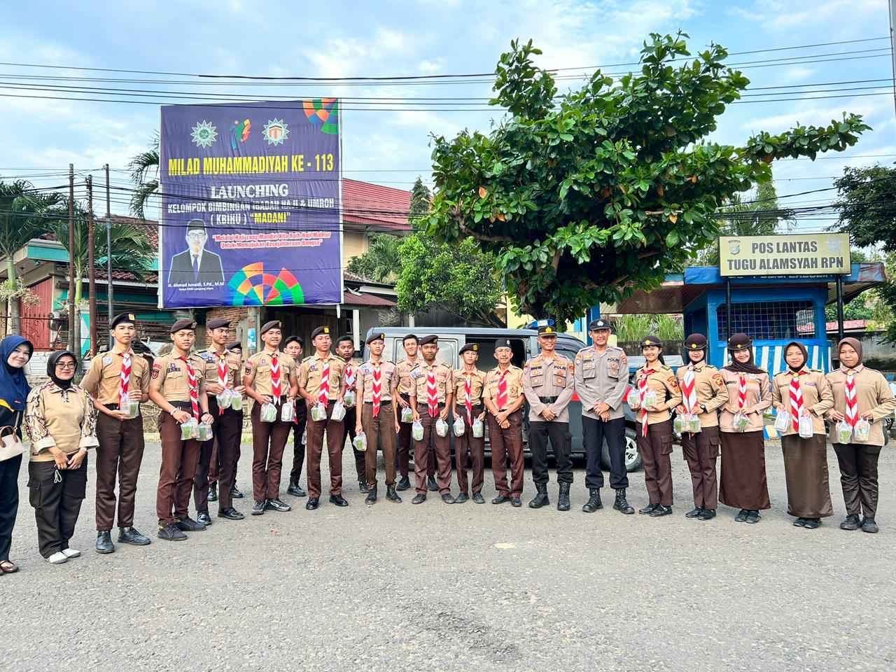 Satuan Pembinaan Masyarakat (Sat Binmas) Polres Lampung Utara bersama anggota Saka Bhayangkara melaksanakan kegiatan berbagi takjil kepada masyarakat di Bundaran Tugu Alamsyah RPN, Kotabumi, Minggu (8/3/2026) sore.