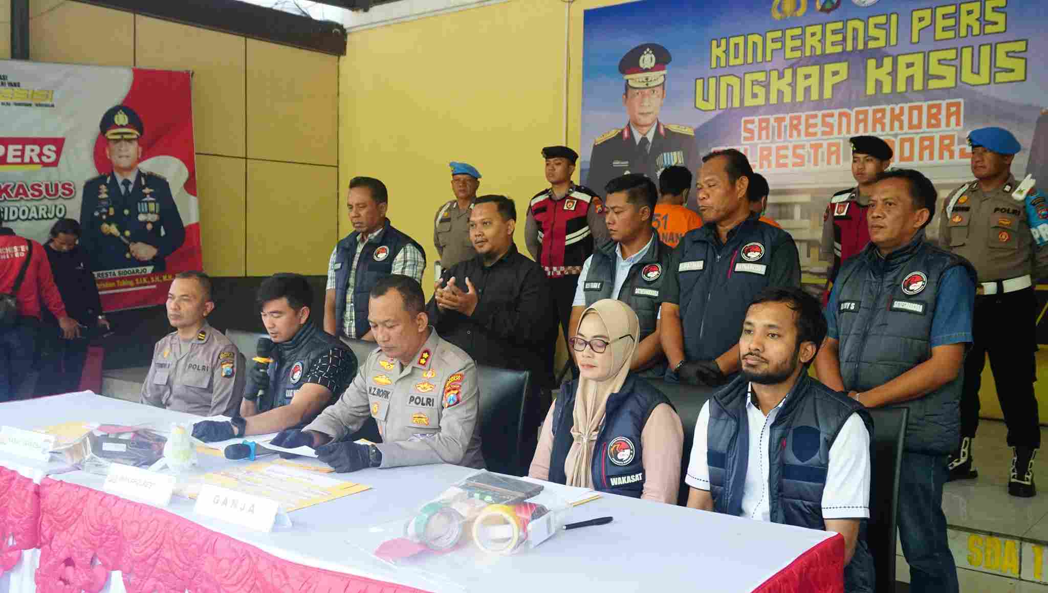 Wakapolresta Sidoarjo didampingi Kasat Resnarkoba Polresta Sidoarjo Kompol Riki Donaire Piliang dan Kasi Humas Polresta Sidoarjo Iptu Tri Novi Handono, menjelaskan bahwa dari dua kasus tersebut diperoleh barang bukti 226 gram sabu dan 18 butir pil ekstasi.