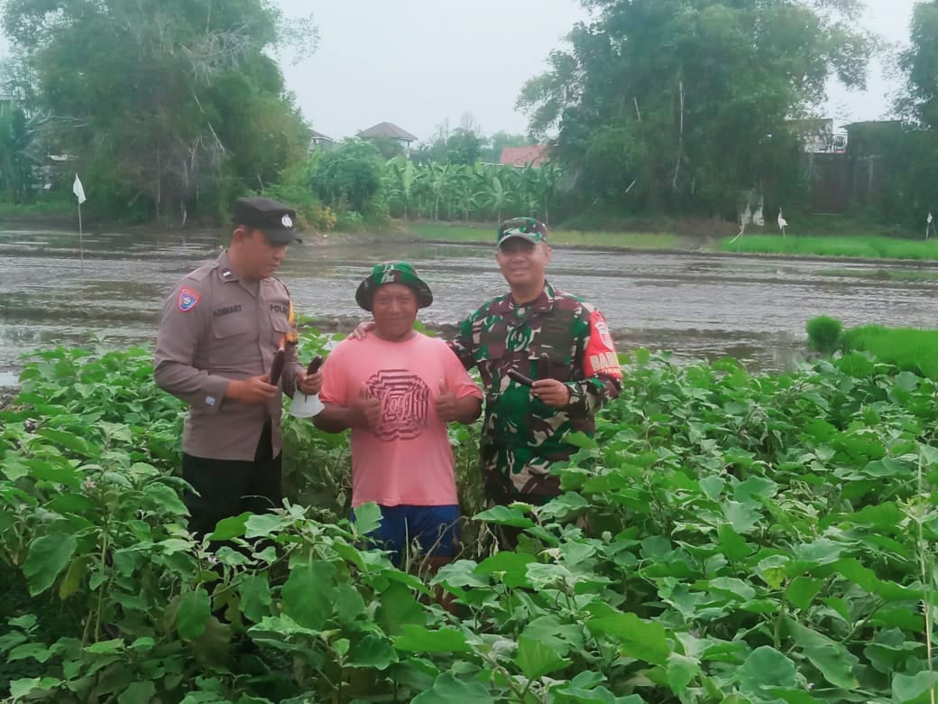 SIDOARJO -Wujud nyata sinergitas TNI-Polri dalam mendukung program ketahanan pangan nasional kembali ditunjukkan oleh Bhabinkamtibmas Desa Sidokepung Aipda Adi Maret bersama Babinsa Serda Aris.
