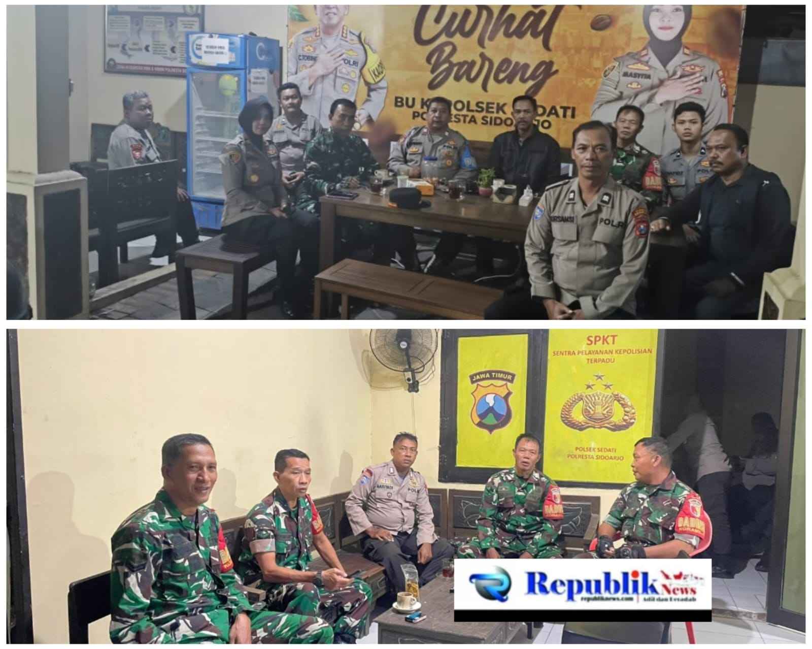 Dalam kegiatan yang berlangsung di Mapolsek Sedati, terlihat Kapolsek Sedati bersama anggota, serta Danramil 0816/18 Sedati dan personelnya duduk bersama dalam suasana penuh kebersamaan.