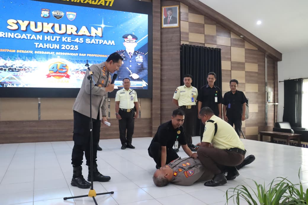 “Pada pagi hari ini kita melaksanakan syukuran Peringatan HUT Ke-45 Satpam. Kami mengucapkan syukur atas kebersamaan dan dedikasi rekan-rekan Satpam dalam menjaga keamanan dan keselamatan di wilayah kerjanya masing-masing,” ujar AKBP Raden Erik Bangun Prakasa.