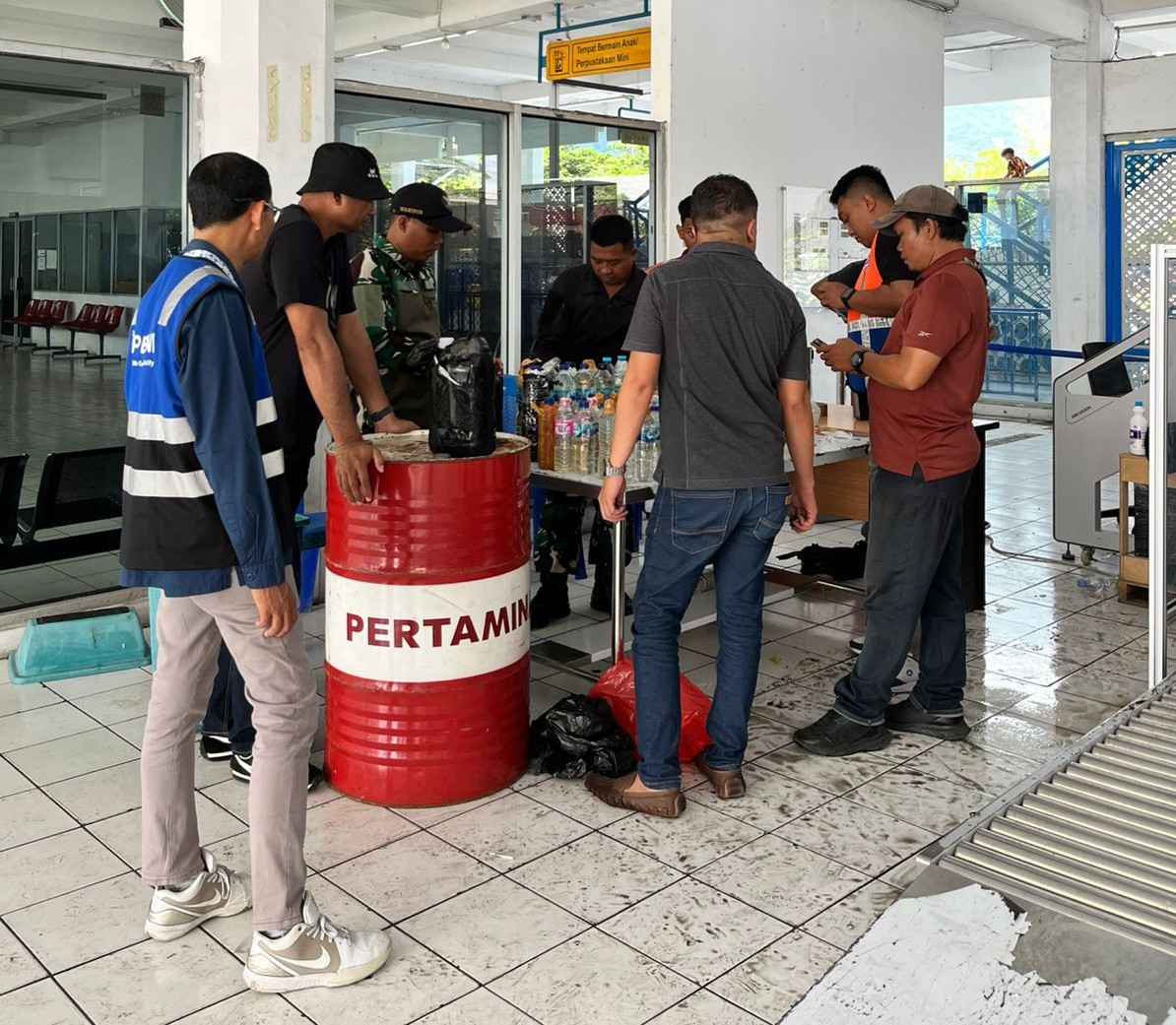 Dalam proses pemeriksaan, petugas gabungan berhasil menggagalkan upaya penyelundupan puluhan botol minuman keras ilegal jenis cap tikus. Barang-barang tersebut ditemukan tanpa pemilik melalui deteksi mesin X-Ray.