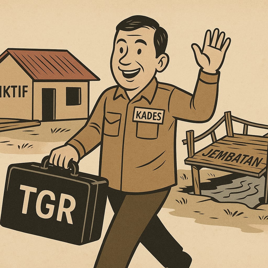 Lebih lucu lagi, pelaku malah bisa naik pangkat. Ada yang mencalonkan diri kembali, bahkan ada yang diangkat jadi TPK atau panitia pembangunan berikutnya. Uang yang dulu dikorup, kini dibayar pakai dana desa lagi lewat proyek-proyek pesanan. Transaksi terselubung makin halus, makin lihai, makin legal di mata yang pura-pura buta.